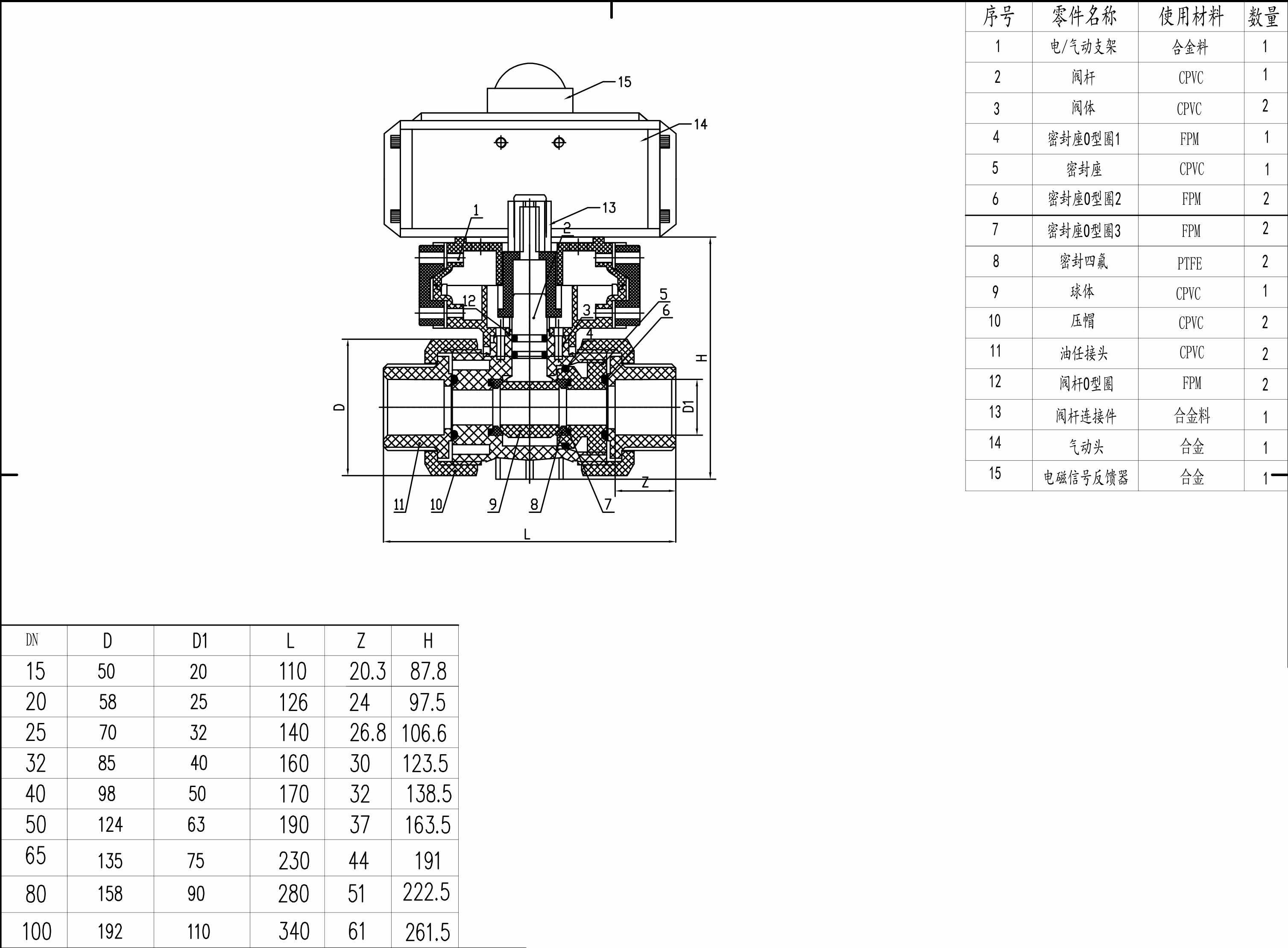 • CPVC 气动双由令球阀 Q661F-10V
